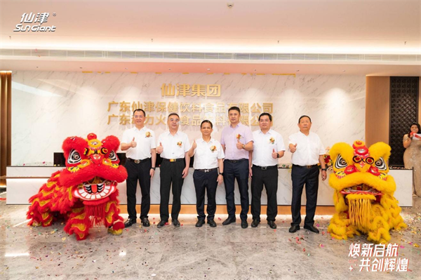 在瑞獅吐福的喜慶氣氛中,政府及行業(yè)各界嘉賓與仙津集團(tuán)領(lǐng)導(dǎo)高層,移步至揭牌儀式區(qū),松山湖黨工委委員、管委會委員黃鏡銓、松山湖管委會總經(jīng)濟(jì)師兼北部片區(qū)黨委書記陳潮暉、中國食品工業(yè)協(xié)會顧問張俊修、東莞市工商聯(lián)主席黃建平、東莞市上市公司協(xié)會會長林海川,廣東仙津集團(tuán)有限公司董事長鄧志華共同為仙津集團(tuán)揭牌,標(biāo)志著仙津集團(tuán)拉開嶄新序幕,走向全新征程!