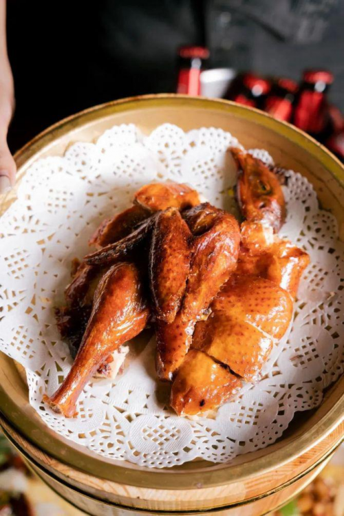 要說這里最出圈的菜品是什么,那一定是外酥里嫩的胡桃里烤雞??倦u色澤似琥珀,又似棕紅,周身油亮亮的光澤勾引著食客。