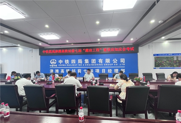 為進一步增強項目全員廉潔自律意識,積極響應(yīng)津濰高鐵“廉潔工程”建設(shè)工作全面開展,7月24日,中鐵四局一公司津濰高鐵站前七標(biāo)項目黨總支組織項目經(jīng)理部全體員工開展“廉潔工程”建設(shè)應(yīng)知應(yīng)會知識測試活動,以考促學(xué),以學(xué)促干,提升項目全體員工“廉潔工程”建設(shè)工作的主動性、積極性。