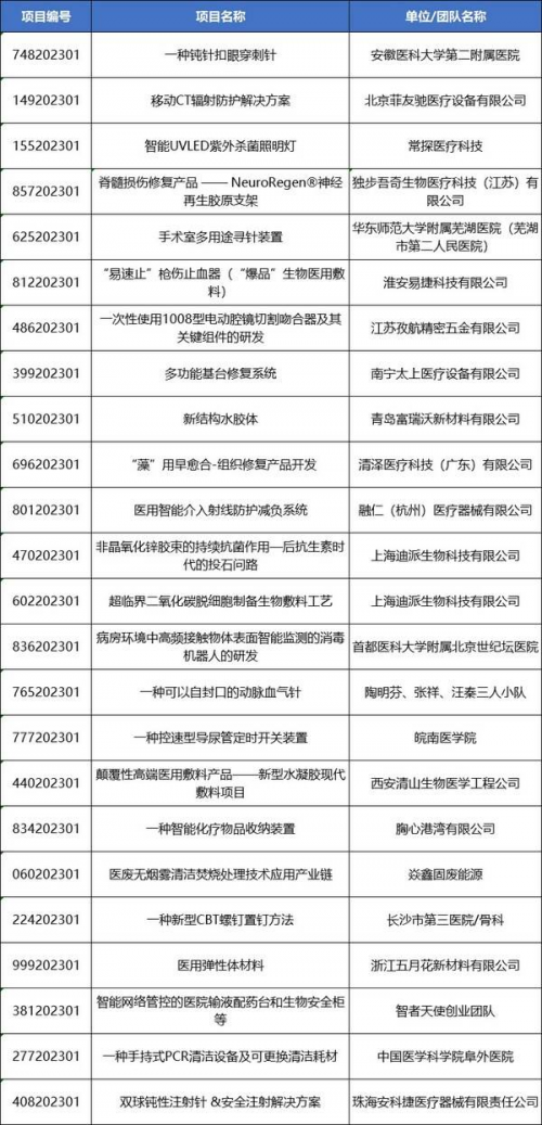 醫(yī)用材料類別賽入圍項(xiàng)目