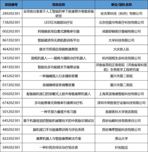 康復(fù)器械及輔具類別賽入圍項(xiàng)目