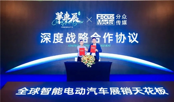 在中國,說到勢能,說到心智,說到品牌,我們不得不提到一個人,那就是我們也看到了的分眾傳媒董事長江南春先生來到了現(xiàn)場,我們把掌聲給他。說到打造品牌勢能和聲勢,在中國我們只要守好一個天然場景就可以了,那就是成就中國品牌最多,中國2億主流人流必經(jīng)之地的分眾媒體。接下來我們會和分眾形成深度戰(zhàn)略合作!我和江總都有一個共識,兩家強強聯(lián)合。分眾擁有中國主流人群的入口,有天然向行業(yè)喊話的場景,而華墨擁有會展+數(shù)字化深度運營的能力,因為我們兩家結合,重構了營銷,重構線下的場景。一定會打造一個全新會展物種,為智能電動汽車行業(yè)一個高效的營銷通道,今天江總也會給大家做分享。