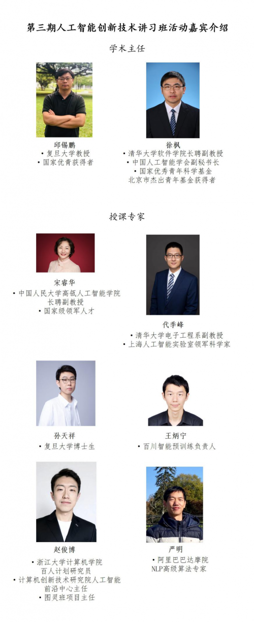 本期人工智能創(chuàng)新技術講習班將采用線下開班,線上直播互動同步進行,關注“中國人工智能學會”公眾號可獲取更多報名信息,免費參加線下講習班。