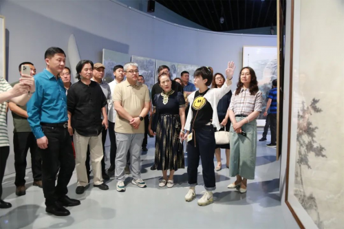開展當日上午,山東美術館與內(nèi)蒙古文藝界領導嘉賓、藝術家一同參觀展覽。隨后,以“黃河故事”為主題的展覽研討會順利舉辦。