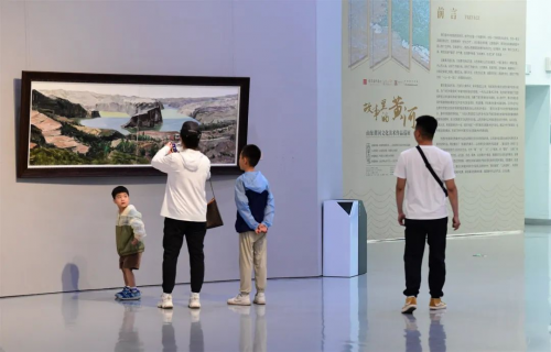 包雙梅:在展覽中,我們看到魯蒙兩地藝術家以黃河為主題,運用中國畫、油畫、水彩、綜合材料等不同形式語言,表現(xiàn)黃河中段和下游的美好景致,畫種齊全、形式多樣,充分體現(xiàn)出黃河文化的包容性和開放性。新時代,我們要實現(xiàn)黃河流域的生態(tài)保護和高質(zhì)量發(fā)展,需要凝聚起更磅礴的精神力量。本次展覽讓山東和內(nèi)蒙古兩地共同聚焦黃河文化主題,是具有歷史意義的。