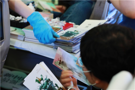 “云南被稱為什么王國?”“云南省博物館里有一個文物有兩頭牛一只老虎,這件文物叫什么?”“央視《國家寶藏》中云南省博物館入選了三件文物,是哪三件呢?”旅客在與乘務員精彩互動的過程中紛紛聊起了文物故事,翻看起文物畫冊。