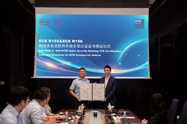 7月10日,國內(nèi)商用車首張UN ECE R155&ECE R156車型VTA證書頒證儀式在比亞迪總部舉行。比亞迪繼獲得商用車第一張ISO/SAE 21434網(wǎng)絡安全管理流程證書、R155 網(wǎng)絡安全管理體系(CSMS)以及R156軟件升級管理體系(SUMS)體系證書后,又率先獲得R155網(wǎng)絡安全及R156軟件升級車型認證(VTA)證書。