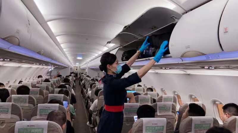 暑運(yùn)期間最大的特點(diǎn)就是客座率高,東航近期日均客座率都在80%左右;此外就是天氣復(fù)雜多變。相較于平日,在航前準(zhǔn)備過程中,金智音和乘務(wù)組們近期會(huì)格外關(guān)注目的地天氣情況、客座率、旅客構(gòu)成,特別是行李托運(yùn)情況等?!翱妥噬蟻砹?#xff0c;上機(jī)的行李自然就多了。為了妥善放置旅客的行李,我們一方面會(huì)提前在保障群里同地面緊密溝通監(jiān)控行李數(shù)量,一方面也會(huì)在航前準(zhǔn)備會(huì)上對(duì)乘務(wù)員們擺放行李提前進(jìn)行詳細(xì)部署?!苯鹬且粢矔?huì)在機(jī)艙門口細(xì)心觀察,當(dāng)看到旅客行李箱較多,她還會(huì)以機(jī)上廣播的方式做好提醒,建議并幫助旅客將小型背包放置在座椅擋桿下方,確保每件行李都能放置妥善。