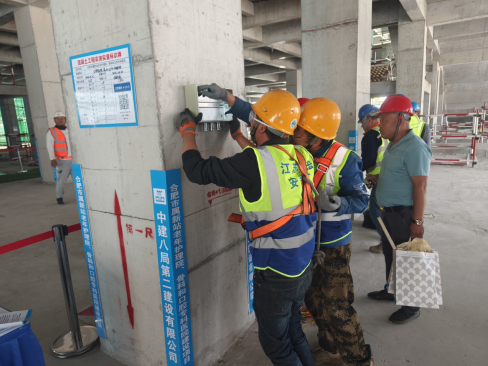 競(jìng)賽結(jié)束后,開(kāi)展了新站醫(yī)院項(xiàng)目施工現(xiàn)場(chǎng)安全質(zhì)量觀摩活動(dòng)。觀摩人員對(duì)觀摩項(xiàng)目采用的“鍍鋅盤(pán)扣+鋼板網(wǎng)”防護(hù)體系、鍍鋅盤(pán)扣內(nèi)支撐架體系的安全性等展開(kāi)了積極討論,并給予高度評(píng)價(jià),對(duì)項(xiàng)目采取的“三區(qū)”(防墜區(qū)、走道區(qū)、料場(chǎng)區(qū))分離的超前策劃以及“三色聚氨酯”“混凝土攔茬”等創(chuàng)新技術(shù)應(yīng)用進(jìn)行了深入了解。