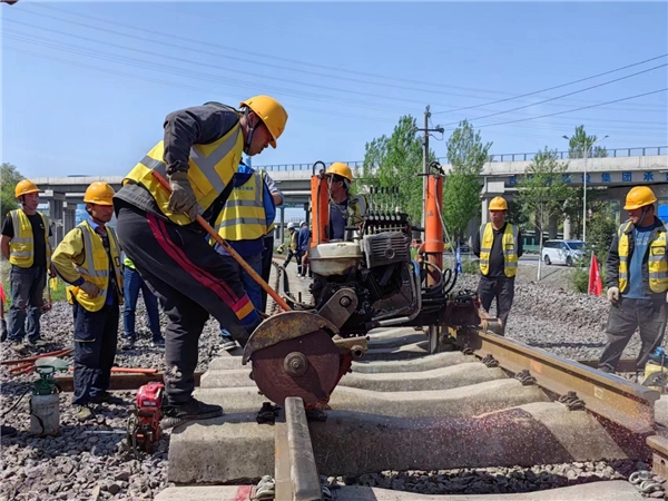 上午8時許,隨著駐站聯(lián)絡(luò)員精準的天窗施工報點后,上、下行線共200余名作業(yè)人員迅速上道,開始鋸軌、清除既有線枕木頭及枕木盒道碴、整平既有道床、撥移既有線路與預(yù)鋪線路連接等工作,并在線路撥移到位后,迅速進行鋼軌焊接、上碴整道、大機搗固、精調(diào)等作業(yè)。隨后,工務(wù)檢查軌道靜態(tài)幾何尺寸,并進行電氣信號聯(lián)鎖試驗,于中午12:30分左右完成施工,恢復(fù)線路。為確保營業(yè)線施工安全質(zhì)量進度全面受控,項目部超前謀劃,統(tǒng)籌組織,突出關(guān)鍵環(huán)節(jié)和重點工序,從資源配置、方案優(yōu)化、安全質(zhì)量等方面入手,明確責任分工,優(yōu)化組織設(shè)計,動態(tài)跟蹤調(diào)整,并嚴格按照鐵路部門有關(guān)文件要求設(shè)置封鎖及慢行防護,最終圓滿完成了撥接施工任務(wù)。