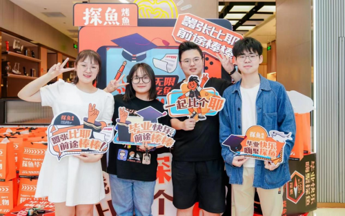 學(xué)生是Z世代的另一重身份,他們愛(ài)玩、注重體驗(yàn)和儀式感,樂(lè)于嘗新,對(duì)未知充滿期待。面對(duì)畢業(yè)這一人生重要節(jié)點(diǎn),好友相聚的聚餐場(chǎng)景需求自然形成,但餐飲品牌卻很少可以捕捉這一痛點(diǎn)。專(zhuān)注年輕化、關(guān)注年輕群體的探魚(yú)發(fā)掘場(chǎng)景需求、升級(jí)互動(dòng)方式,把握這一機(jī)遇,也收獲了良好的正向反饋。