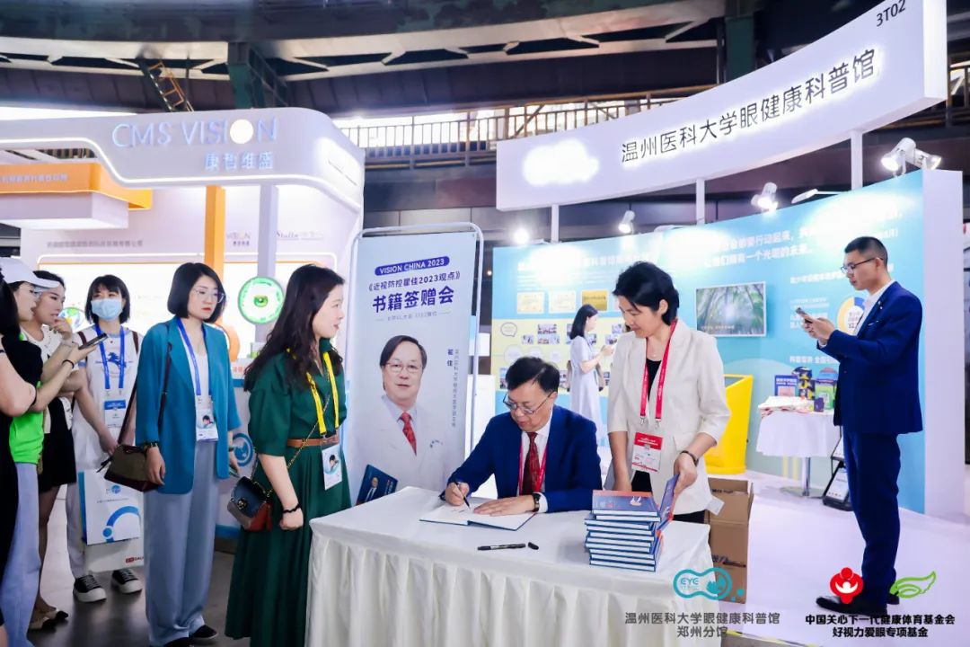 瞿佳教授一直致力于科普護(hù)眼,這次VC大會(huì),瞿佳教授亮相3T02展位(溫州醫(yī)科大學(xué)眼健康科普館鄭州分館)親筆簽贈(zèng)新書(shū)——《近視防控瞿佳2023觀點(diǎn)》!展位現(xiàn)場(chǎng)吸引眾多觀眾,排隊(duì)人員爆滿,此次簽贈(zèng)會(huì)帶動(dòng)眾人關(guān)注科普公益與護(hù)眼科普!