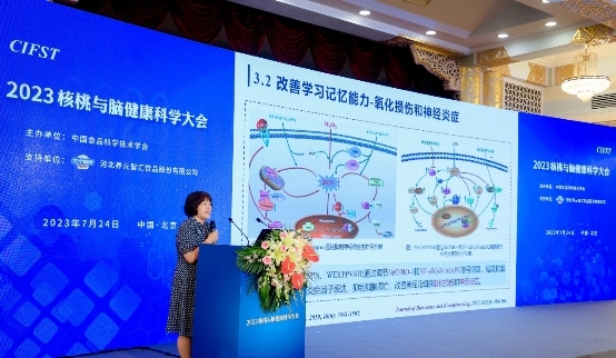 孫寶國(guó)院士在致辭中表示,近年來(lái),隨著人口結(jié)構(gòu)性變化與消費(fèi)者健康需求的不斷細(xì)分,腦健康問(wèn)題備受關(guān)注,已成為全球性的健康挑戰(zhàn)。大會(huì)圍繞“核桃與腦健康科學(xué)”展開(kāi)學(xué)術(shù)探討具有重要意義。一方面,認(rèn)真梳理我國(guó)乃至全球核桃與腦健康相關(guān)的科學(xué)問(wèn)題,講好核桃與腦健康的科學(xué)故事;另一方面,也體現(xiàn)出我國(guó)食品產(chǎn)業(yè)界正以實(shí)際行動(dòng)重視深層次的科研與臨床研究,服務(wù)于產(chǎn)業(yè)高質(zhì)量發(fā)展的責(zé)任與擔(dān)當(dāng)。