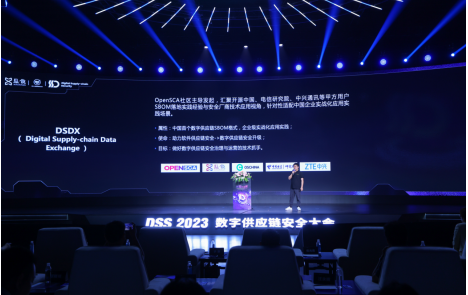 在大會發(fā)布儀式上,懸鏡安全正式對外公布了中國首個數(shù)字供應鏈SBOM格式——DSDX(Digital Supply-chain Data Exchange ) 。DSDX由OpenSCA社區(qū)主導發(fā)起,匯聚開源中國、電信研究院、中興通訊等甲方用戶SBOM落地實踐經(jīng)驗與安全廠商技術(shù)應用視角,針對性適配中國企業(yè)實戰(zhàn)化應用場景。其目標是成為數(shù)字供應鏈安全治理與運營的核心技術(shù)抓手,以助力行業(yè)將軟件供應安全升級為數(shù)字供應鏈安全。