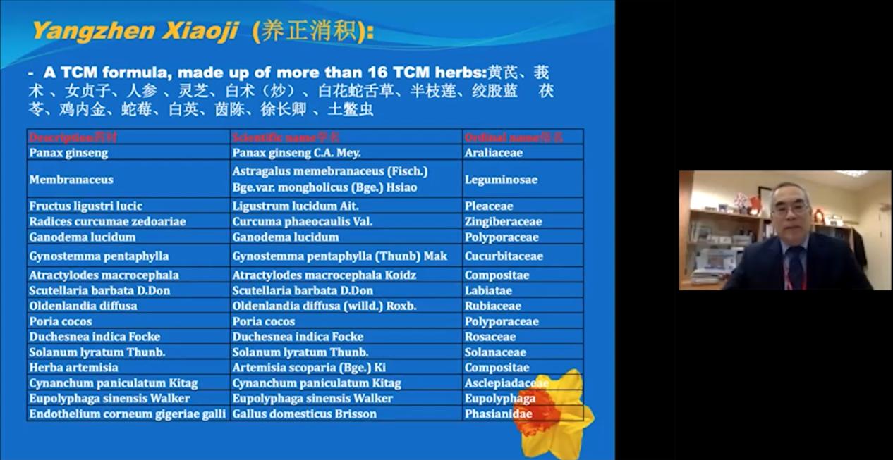 英國(guó)卡迪夫大學(xué)醫(yī)學(xué)院的姜文國(guó)教授以《腫瘤轉(zhuǎn)移的機(jī)制與治療》為主題,就腫瘤轉(zhuǎn)移的機(jī)制及中醫(yī)藥在腫瘤防治中的療效和優(yōu)勢(shì)進(jìn)行了詳細(xì)解讀。姜文國(guó)教授指出,養(yǎng)正消積膠囊作為一種廣譜抗腫瘤中藥,與抗血管新生的靶向藥物聯(lián)合應(yīng)用后,可降低或延緩這些靶向藥耐藥性的發(fā)生。早期的系列臨床研究發(fā)現(xiàn),腫瘤患者在化療前就開(kāi)始服用養(yǎng)正消積膠囊,可發(fā)揮增效減毒的作用,不僅能增加患者對(duì)化療藥物的敏感性,提高療效,還能緩解患者癥狀,提高患者生活質(zhì)量,減少疲勞癥狀、食欲降低等化療副反應(yīng)。這些研究涉及到胃癌、胰腺癌、肺癌和乳腺癌等多種腫瘤類型。