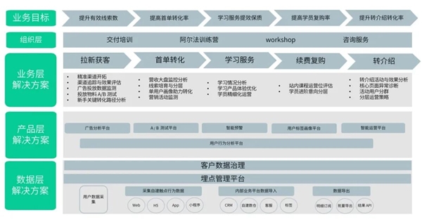 接下來,我們將從 5 大核心增長目標,4 層關(guān)鍵驅(qū)動要素,進一步了解神策數(shù)據(jù)職業(yè)教育 & 素質(zhì)教育解決方案。