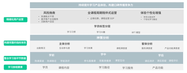 教培機構(gòu)的口碑依賴于學(xué)員對課程服務(wù)的評價,因此,基于學(xué)習(xí)主體與客體的全面分析,是改進課程、驅(qū)動學(xué)習(xí)產(chǎn)品體驗升級的重要依據(jù)。