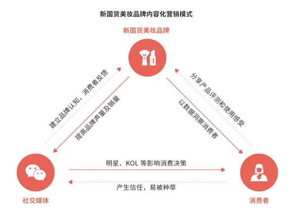 第二,國貨美妝 3.0 時代,品牌營銷呈現(xiàn)數(shù)字化、內(nèi)容化趨勢,社交媒體平臺成為品牌占領(lǐng)消費者心智的主要媒介。