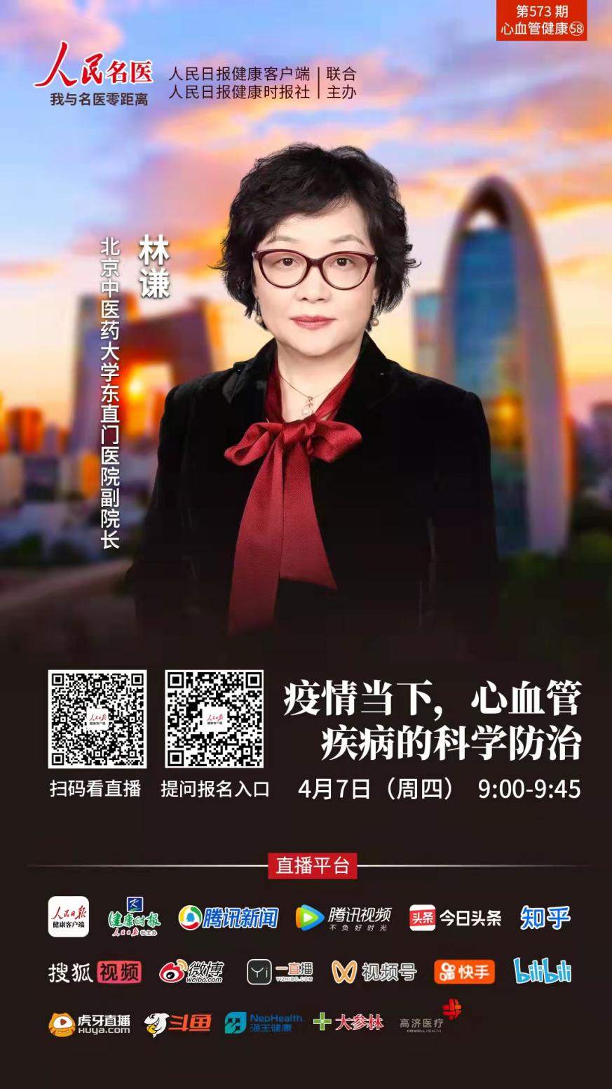 4月7日上午9:00~9:45,以嶺藥業(yè)聯(lián)合人民日?qǐng)?bào)健康客戶端策劃的世界健康日直播訪談節(jié)目《疫情當(dāng)下,心腦血管疾病的科學(xué)防治》,特別邀請(qǐng)到北京中醫(yī)藥大學(xué)東直門醫(yī)院副院長林謙為大家進(jìn)行權(quán)威解答!