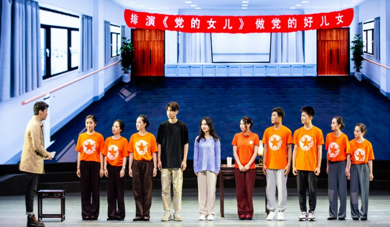 主題是“忠誠”的故事,取材自湖北師生親身經歷,女主角桂英的扮演者何曉蓮在家鄉(xiāng)武漢經歷抗疫洗禮,成為一名社區(qū)志愿者。從身邊的黨員志愿者和身為黨員的父母身上,她漸漸理解了什么是共產黨員的信念。這正是《2020好兒女》的故事主線。編劇周勝南說,“忠誠不僅僅是戲中戲的主角桂英等革命先輩對黨的忠誠,也是青年學子對祖國、對黨的忠誠?!薄饵h的女兒》是經典民族歌劇,2001年以來,上海師范大學先后4次排演教師版、學生版、校園版民族歌劇《黨的女兒》,而《2020好兒女》的故事正是從大學生何曉蓮排演《黨的女兒》開始。劇中的人物經歷均取材自上海師范大學師生的真實故事。何曉蓮的扮演者、上海師范大學音樂學院學生涂暢說:“隨著排演的不斷深入,我似乎總能感覺到有一股力量在引導著我往前行?!蓖醮蟪傻陌缪菡?、上海師范大學影視傳媒學院學生朱圣顥是第一次參演歌舞劇。他說:“在戲中一次次感受共產黨員的矢志不渝的堅定信仰?!鼻嗄暄輪T們紛紛表示,不僅要在舞臺上演好黨的好兒女,舞臺下更要做好新時代黨的好兒女。創(chuàng)排校園歌舞劇《2020好兒女》是上海師范大學發(fā)揮學科優(yōu)勢,創(chuàng)新黨史學習教育的方法載體,將黨史教育融入育人實踐。近300名演職人員每天進行大強度排練,放棄所有節(jié)假日,該劇除保留民族歌劇《黨的女兒》中《杜鵑花》等少量經典唱段外,創(chuàng)作了大批原創(chuàng)音樂和舞蹈作品。其中包括《別樣武漢心慌亂》《青春耀神州》《共產黨員圖什么》《相約畢業(yè)季》《今天畢業(yè)》等5部歌曲和民族舞、現代舞等4部舞蹈作品,同時,改編原劇歌曲5部。該劇作曲申林表示,“在創(chuàng)作中學習,在創(chuàng)作中感動,是我創(chuàng)作歌舞劇音樂最深刻的感受。用音樂刻畫每個人物形象,是我洗滌心靈的過程?!?/p>