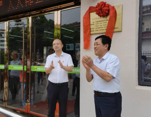 安徽省民政廳二級(jí)巡視員胡前義,桐城市委常委、組織部部長(zhǎng)、統(tǒng)戰(zhàn)部部長(zhǎng)、市政協(xié)黨組副書(shū)記儲(chǔ)江,中華志愿者協(xié)會(huì)關(guān)愛(ài)母嬰健康行動(dòng)辦公室主任、中華志愿者雜志社安徽省聯(lián)絡(luò)處主任項(xiàng)五九,安慶市民政局四級(jí)調(diào)研員路興華,桐城市民政局局長(zhǎng)高光柏,桐城市文昌街道黨工委書(shū)記疏波、文昌街道黨工委副書(shū)記、辦事處主任王延慶等領(lǐng)導(dǎo)參加揭牌儀式,胡前義、儲(chǔ)江為“長(zhǎng)者食堂”揭牌。