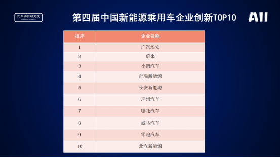 中國新能源乘用車企業(yè)創(chuàng)新TOP10