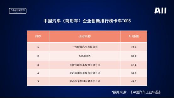中國汽車(商用車)企業(yè)創(chuàng)新排行榜卡車TOP5