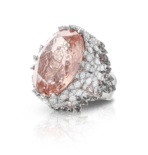 Bon Ton系列是Pasquale Bruni的經(jīng)典標(biāo)志性系列作品,通過(guò)“五瓣花朵”的標(biāo)志造型,詮釋代表女性優(yōu)雅、和諧的氣質(zhì)和精致的生活方式。獨(dú)家專利的“Bon Ton切工”,以精致的切割比例和切面的柔軟花瓣為象征,在寶石中心形成圓形花蕊。
