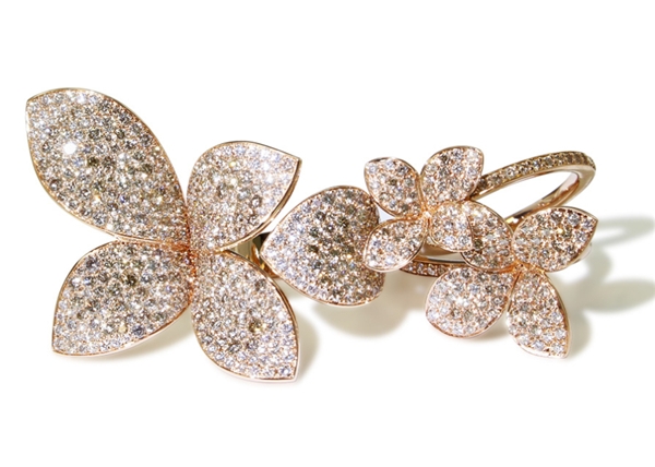 品牌標(biāo)志性的Giardini Segreti系列,汲取置身米蘭神秘的花園和庭院的靈感,鑲嵌大量白鉆或香檳鉆點(diǎn)綴,流動(dòng)舒展,好似葉片在風(fēng)中如花朵紛飛,如蝴蝶般振翅舞動(dòng)的蛻變之旅。