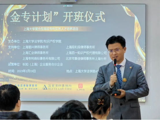 上海段和段律師事務(wù)所知識產(chǎn)權(quán)中心主任郭國中為“金專計(jì)劃”開班儀式致辭時(shí)表示,非常榮幸參與“金專計(jì)劃”,未來將致力于培養(yǎng)更多專利代理實(shí)務(wù)人才。