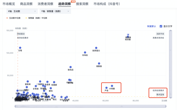 很多品牌在投放時才想到標(biāo)簽,但基于「云創(chuàng)行業(yè)標(biāo)簽」的行業(yè)視角,品牌可以深入了解消費者需求和市場趨勢,在產(chǎn)品賣點、功效、成分、使用場景等更細的維度做更深度洞察,比如了解消費者對某些成分的偏好和需求,挖掘產(chǎn)品的優(yōu)點和優(yōu)勢,以此作為關(guān)鍵詞進行推廣。通過這種方式,品牌可以做出更明智的營銷決策,選對賽道、做好內(nèi)容。