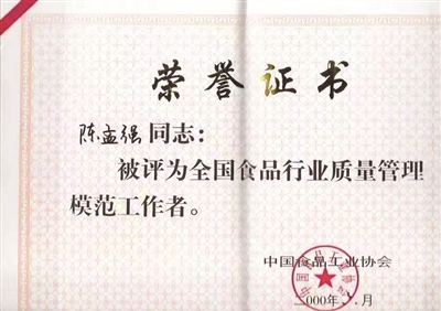 1987年,陳孟強參與起草了《保國際金牌奪國際金獎》的專題報告,并在全國輕工行業(yè)工作會議上進(jìn)行了匯報。