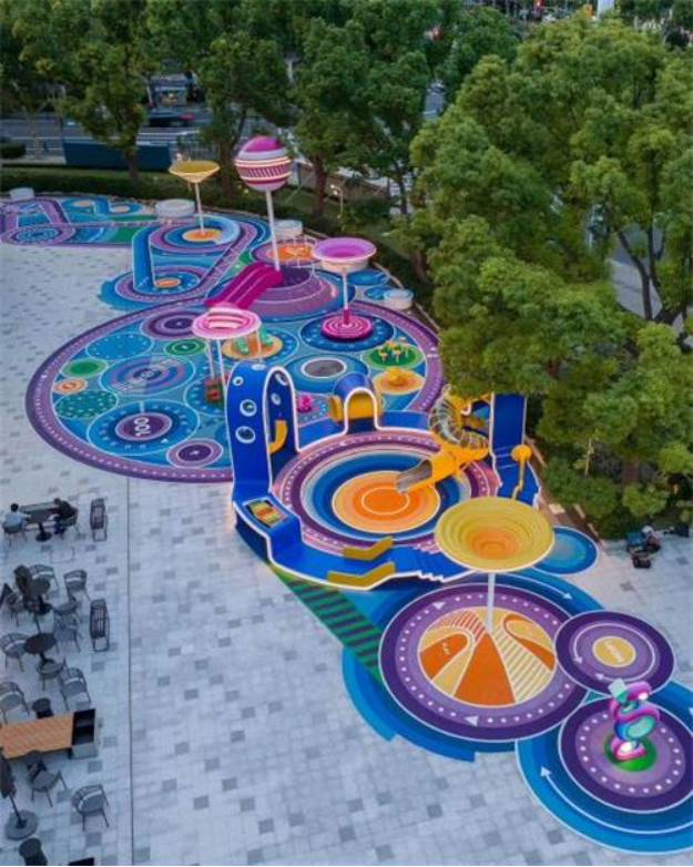 陸家嘴集團(tuán)立足于“兒童友好”理念,以想象中的“糖果世界”為靈感的項(xiàng)目,借助糖果手杖、棒棒糖、冰棍等兒童喜愛的糖果主題,搭建了一條條亮眼且生動的彩虹結(jié),通過巧妙結(jié)合現(xiàn)場的L形地形,不僅承載著多元的游戲活動,而且互相交錯(cuò),蜿蜒穿插形成了一系列互動性、可玩性、娛樂性極高的游玩動線。無論是1歲左右的嬰幼兒,還是14歲步入青春期,不同年齡段的孩子都可以輕松在這里找到愉快且富有挑戰(zhàn)性的游戲項(xiàng)目。
