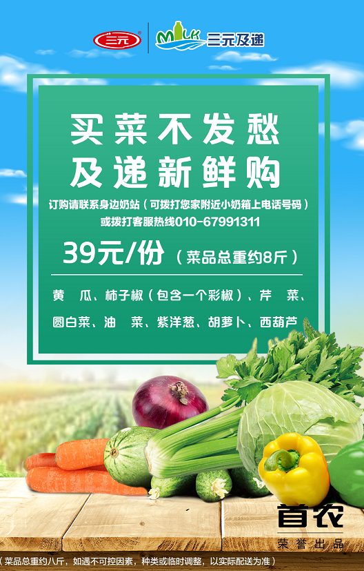 送菜服務(wù)是奶站為解決居民買菜困難而啟動(dòng)的短期業(yè)務(wù)。不光是訂奶戶,奶站服務(wù)覆蓋的小區(qū)居民只要有需求,都可以選擇訂菜。居民訂購可撥打自家附近小奶箱上的電話號(hào)碼與周邊奶站聯(lián)系,或撥打客服熱線010-67991311進(jìn)行預(yù)訂。
