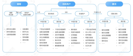 此外,文娛平臺(tái)可以基于人群偏好與用戶行為表現(xiàn),構(gòu)建一套精細(xì)化消息推送策略,比如從潛客到活躍到召回,每個(gè)階段推送不同的內(nèi)容及活動(dòng),例如潛客主要推送新手禮包、首次充值優(yōu)惠等;活躍用戶主要推送個(gè)性化內(nèi)容及互動(dòng)激勵(lì)等;對于沉默用戶推送限時(shí)活動(dòng)和用戶關(guān)懷等。