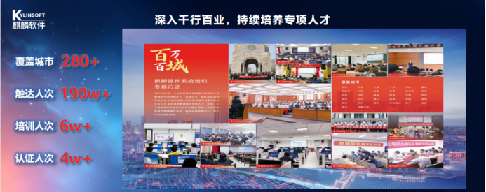 人才是基礎。黨的二十大報告中強調“要堅持教育優(yōu)先發(fā)展、科技自立自強、人才引領驅動”。會上,工業(yè)和信息化部教育與考試中心培訓處處長譚志彬發(fā)布了《百城百萬人才生態(tài)建設成果》。報告指出,自工業(yè)和信息化部教育與考試中心聯(lián)合麒麟軟件推出“百城百萬”操作系統(tǒng)培訓專項行動以來,目前已覆蓋城市280+,累積培養(yǎng)操作系統(tǒng)專業(yè)人才6萬+,為網信產業(yè)可持續(xù)發(fā)展貢獻人才支撐。