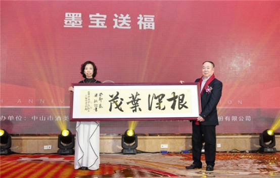值此交接時刻,伍倩雯向第四屆會長藍漢昌贈出名家墨寶《根深葉茂》,向藍會長八年來的無私奉獻、為酒協(xié)發(fā)展打下的深厚基礎(chǔ)致以深深的敬意和祝福。
