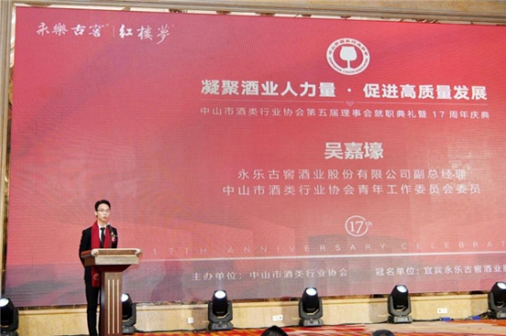 永樂古窖酒業(yè)股份有限公司副總經(jīng)理吳嘉壕作為大會官方合作伙伴、會員單位代表上臺致辭。