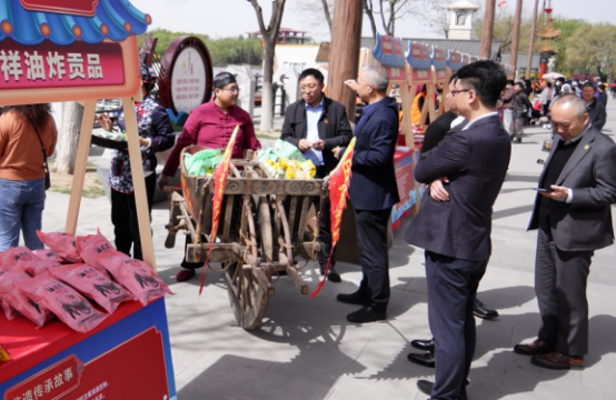 活動現(xiàn)場,漕運碼頭特色集市的合作伙伴——中國非物質(zhì)文化遺產(chǎn)保護協(xié)會“中國非遺美食大集”活動承辦方,為“開槽節(jié)”引入了30多個來自全國各地的非遺美食,包括河南道口燒雞、山西平遙油花花、山東蓬萊小面、廊坊正張香油、手繪糖畫等,贏得了市民廣為關(guān)注和爭相選購,對于推動非遺與大運河文化旅游的融合發(fā)揮了積極作用。