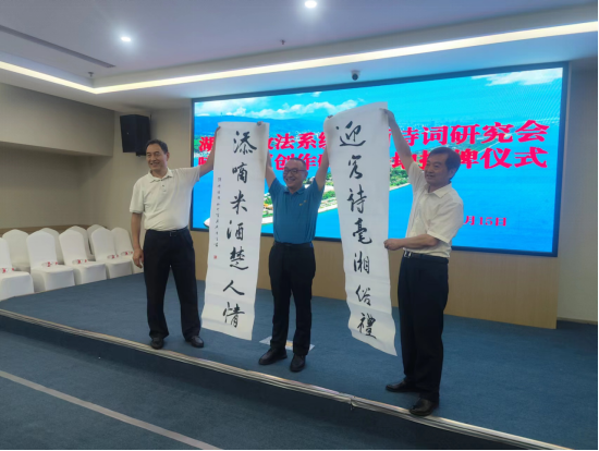 詩以言志,文以化人。以法護(hù)商,以商促文。7月15日上午,坐落于長沙市芙蓉區(qū)“中央文化區(qū)”的嘀嘀大廈五樓會議室高朋滿座,熱鬧非凡?!昂鲜≌ㄎ幕粥执髲B創(chuàng)研基地”簽約暨掛牌儀式在此隆重舉行。省政法系統(tǒng)書畫詩詞研究會主席團(tuán)成員彭對喜,副會長劉慶富;詩詞分會主席陳嶺及副主席賀曦、周加良、江世炎;書法分會主席陳祥松、副主席吳若順;長沙法官文聯(lián)副主席胡軍軍等領(lǐng)導(dǎo)和嘉賓出席活動(dòng)。