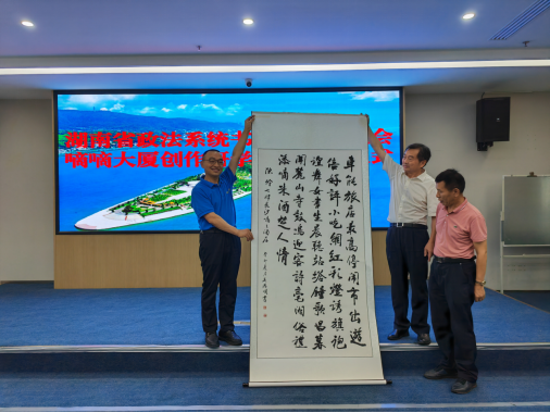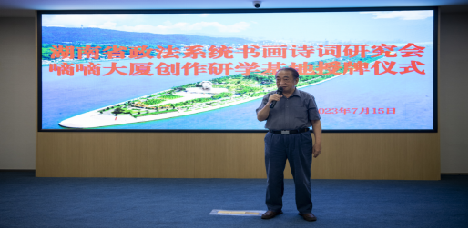 “全面建設(shè)社會主義現(xiàn)代化國家,必須堅(jiān)持中國特色社會主義文化發(fā)展道路,增強(qiáng)文化自信。文化是民族之根。應(yīng)該讀好‘兩本書’,一本是有字的經(jīng)典之書,一本是無字的實(shí)踐之書。嘀嘀大廈緊鄰長沙火車站,來往交通方便,文化氣息濃厚,在長沙法官文聯(lián)學(xué)雷鋒書畫工作站的基礎(chǔ)上,進(jìn)一步成立政法文化創(chuàng)作研學(xué)基地,開展各種有意義的詩詞書畫文藝活動(dòng),可以助力實(shí)現(xiàn)‘以文興商、以商促文’的雙贏目的,為建設(shè)社會主義文化強(qiáng)國貢獻(xiàn)出我們應(yīng)有的心智和力量。這樣的政法文化創(chuàng)作研學(xué)基地多多益善?!迸韺ο矊顒?dòng)給予高度肯定。