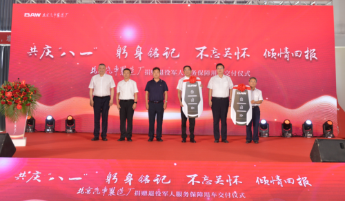 7月28日,北京汽車(chē)制造廠在青島總部基地隆重舉行“共慶‘八一’,躬身銘記,不忘關(guān)懷,傾情回報(bào)”捐贈(zèng)退伍軍人服務(wù)保障用車(chē)交付儀式,以實(shí)際行動(dòng)做出擁軍表率,為建軍96周年獻(xiàn)禮。原空軍指揮學(xué)院副院長(zhǎng)朱和平少將、中國(guó)退役軍人就業(yè)創(chuàng)業(yè)服務(wù)促進(jìn)會(huì)理事長(zhǎng)王義少將、中國(guó)退役軍人就業(yè)創(chuàng)業(yè)服務(wù)促進(jìn)會(huì)常務(wù)副理事長(zhǎng)林崗少將、中國(guó)汽車(chē)工業(yè)協(xié)會(huì)常務(wù)副會(huì)長(zhǎng)兼秘書(shū)長(zhǎng)付炳鋒、山東省退役軍人事務(wù)廳副廳長(zhǎng)劉興磊以及各界領(lǐng)導(dǎo)嘉賓共計(jì)200余人出席了本次儀式,北京汽車(chē)制造廠董事長(zhǎng)陸付軍在現(xiàn)場(chǎng)遞交了此次捐贈(zèng)的BAW卡路里皮卡新車(chē)鑰匙。